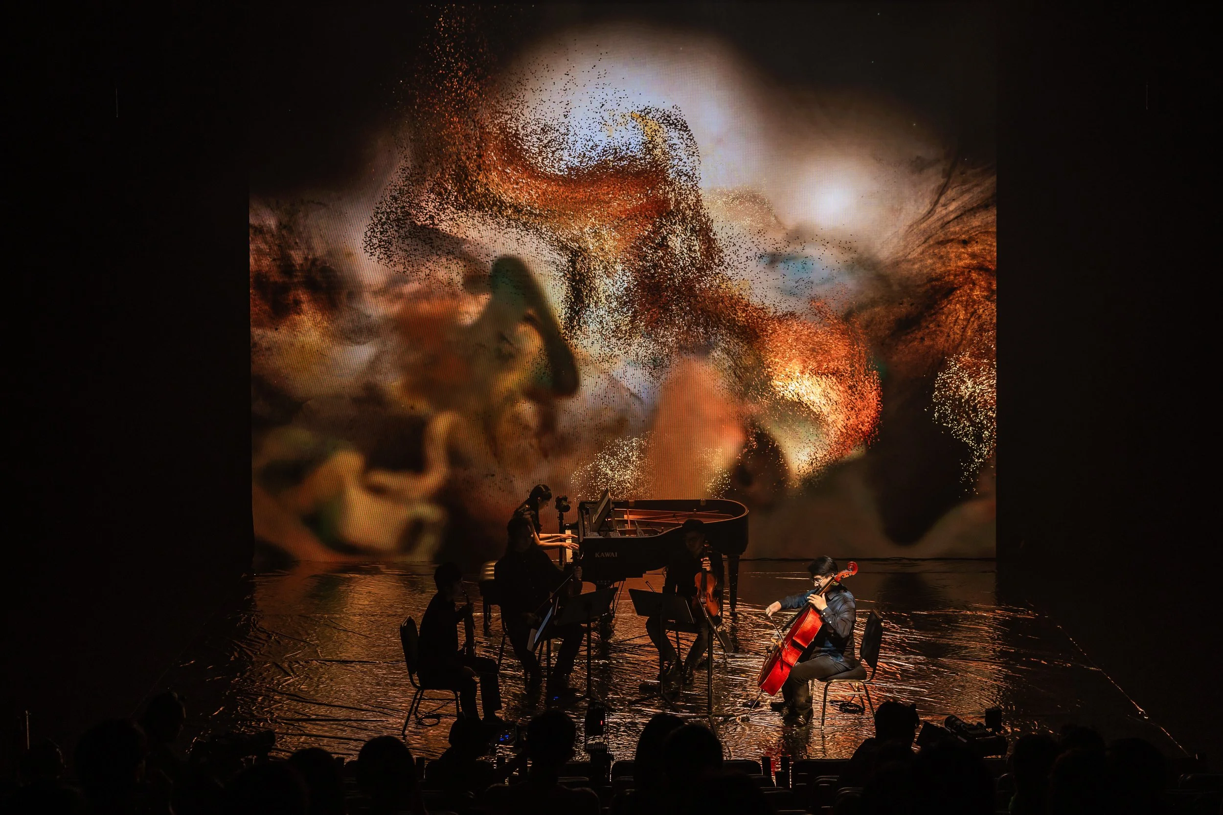 旅程從大腦的神經網絡展開,能量流動、神經脈衝與現場小提琴的即興演奏互動共振,共同譜出一場關於生命本源的聲音詩篇。