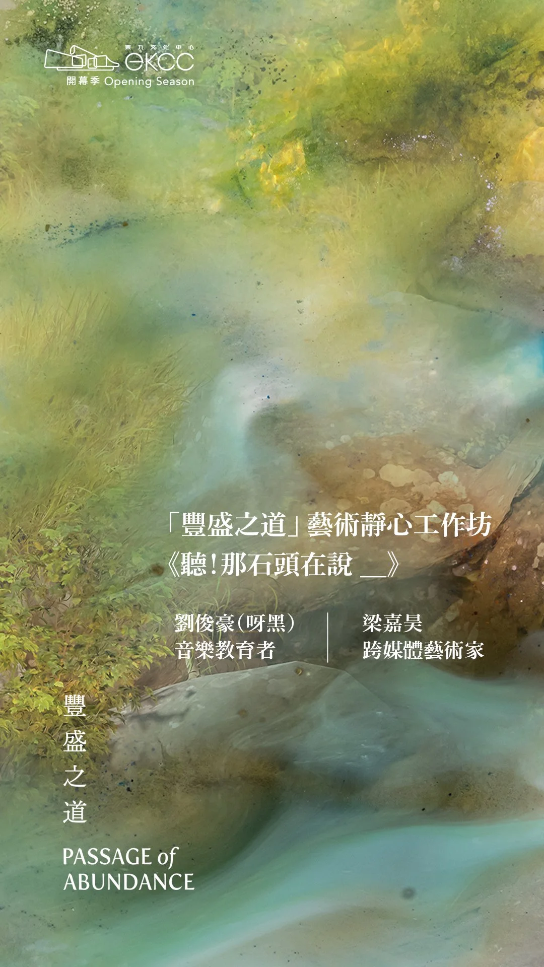 藝術家希望,大眾不僅是欣賞已完成的作品,更能親身體驗創作過程的心靈旅程。透過一系列藝術靜心工作坊,藝術家邀請不同的嘉賓導師,引領參加者以不同的正念藝術方式探索自然元素,發掘屬於自己的 magical moments,並將這份發現轉化為獨一無二的藝術創作。